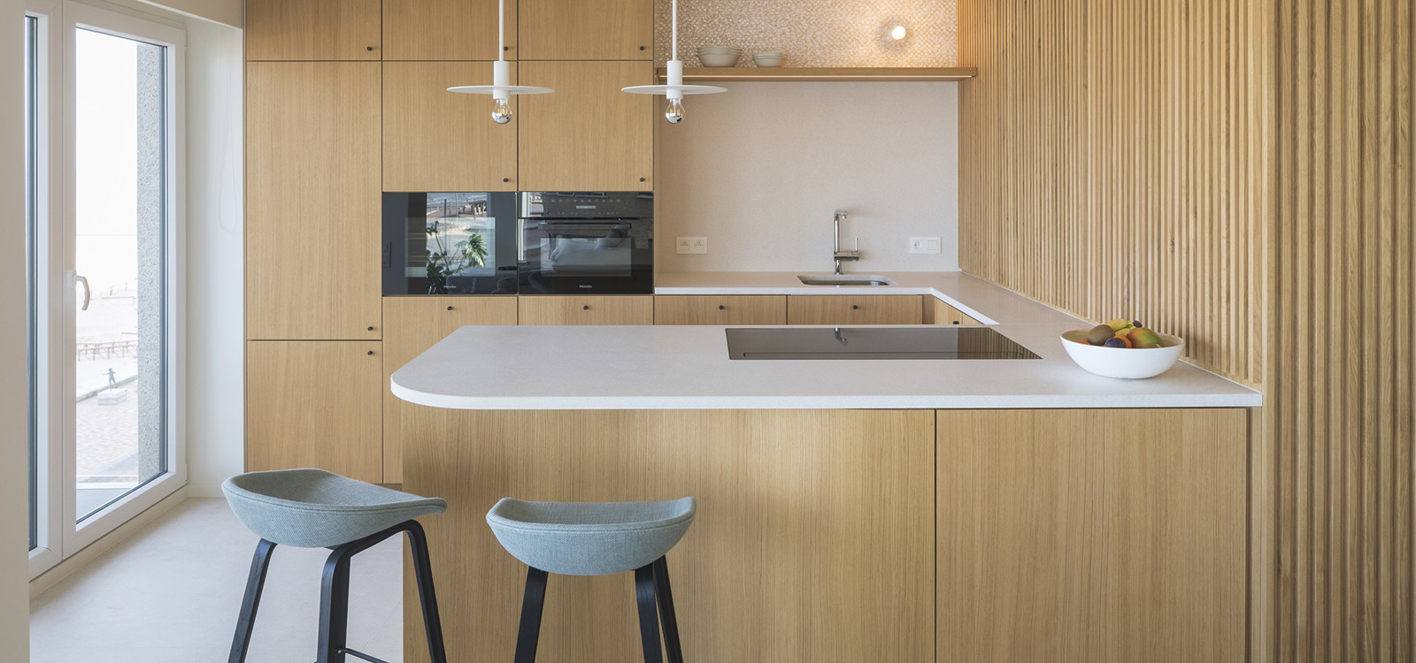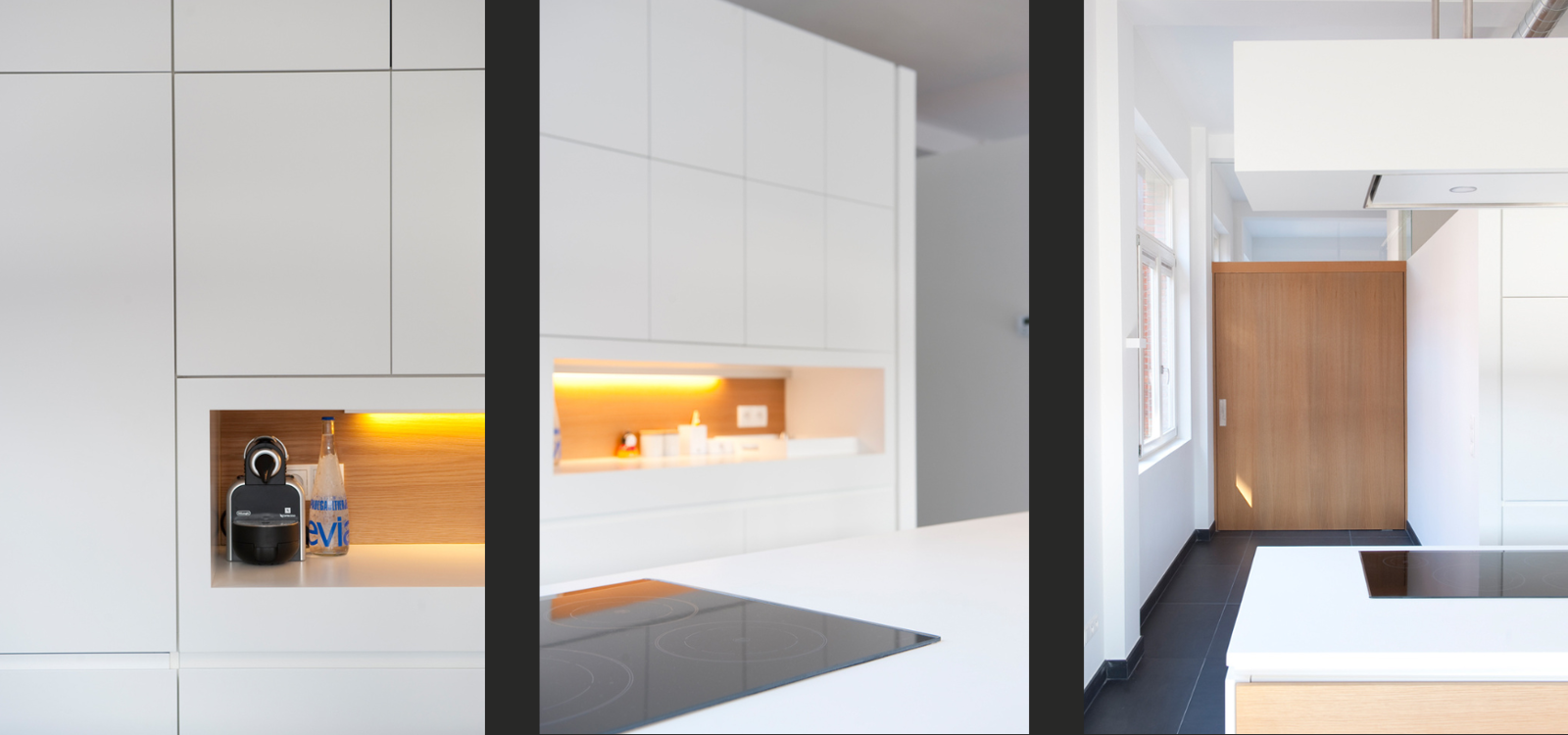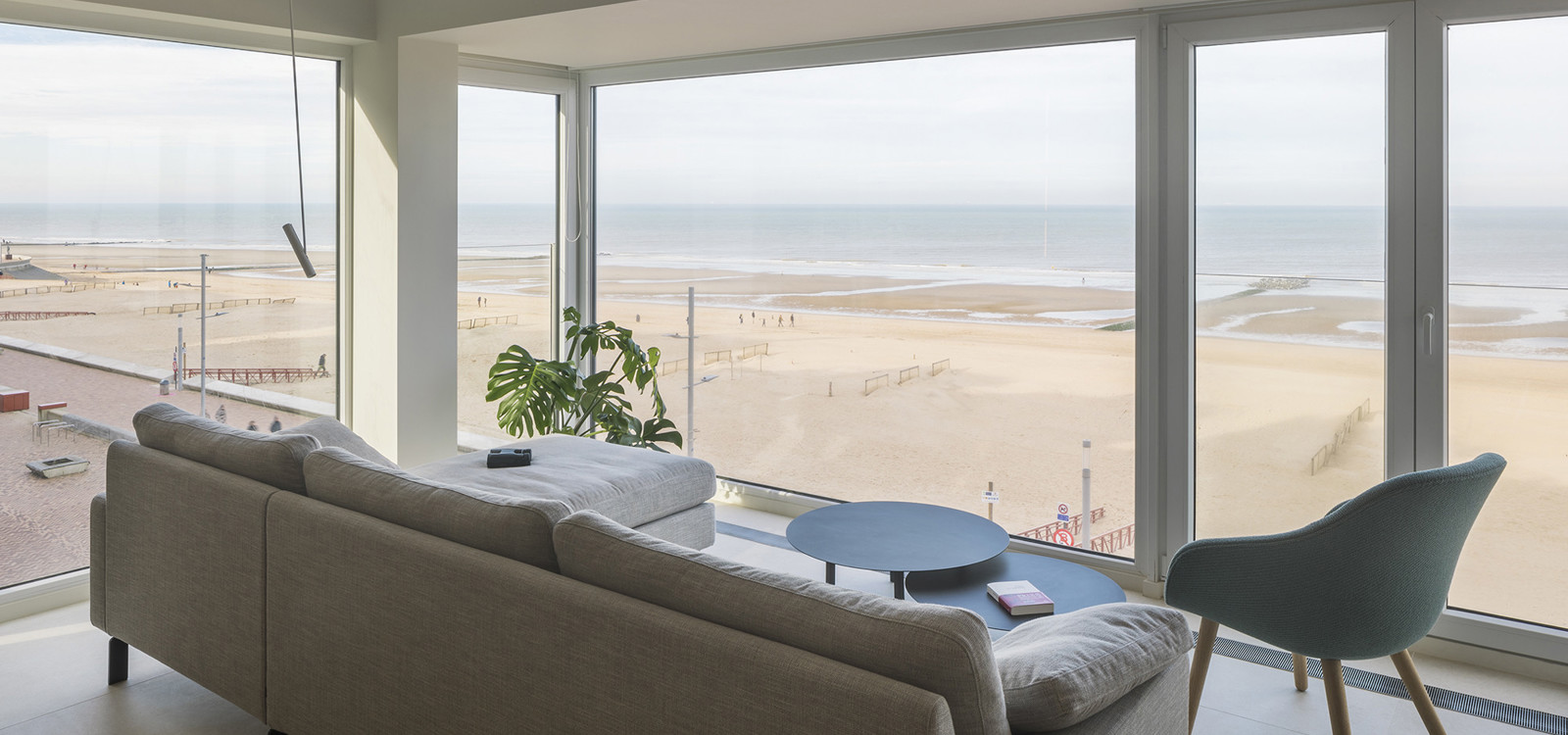 Dit appartement op de zeedijk werd volledig op maat ingericht. De optimalisatie van de beschikbare ruimte en het maximaliseren van de lichtinval bepaalde hier mee het ontwerp.
