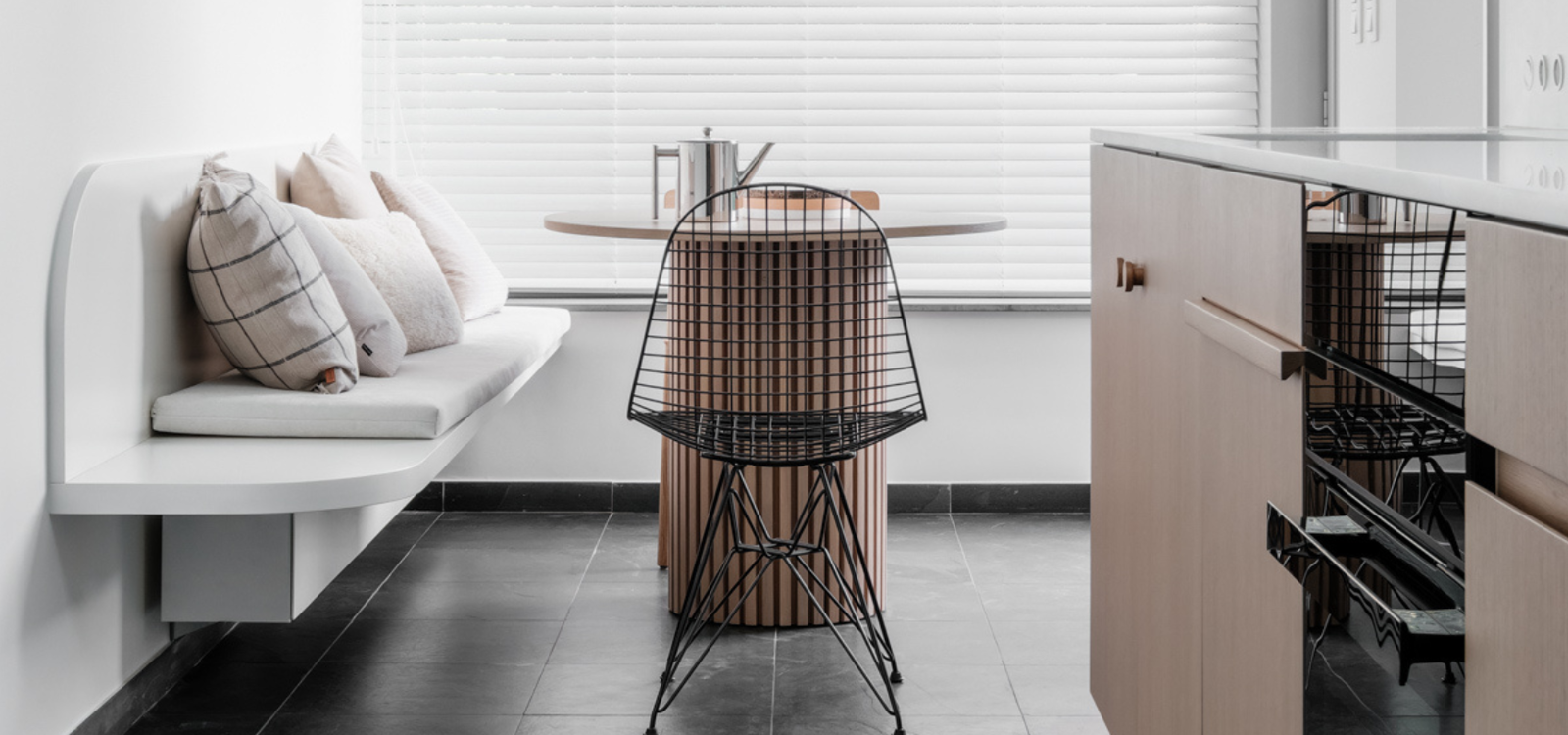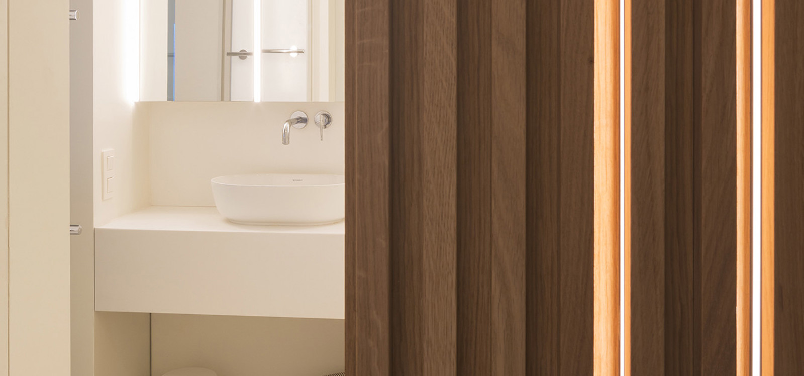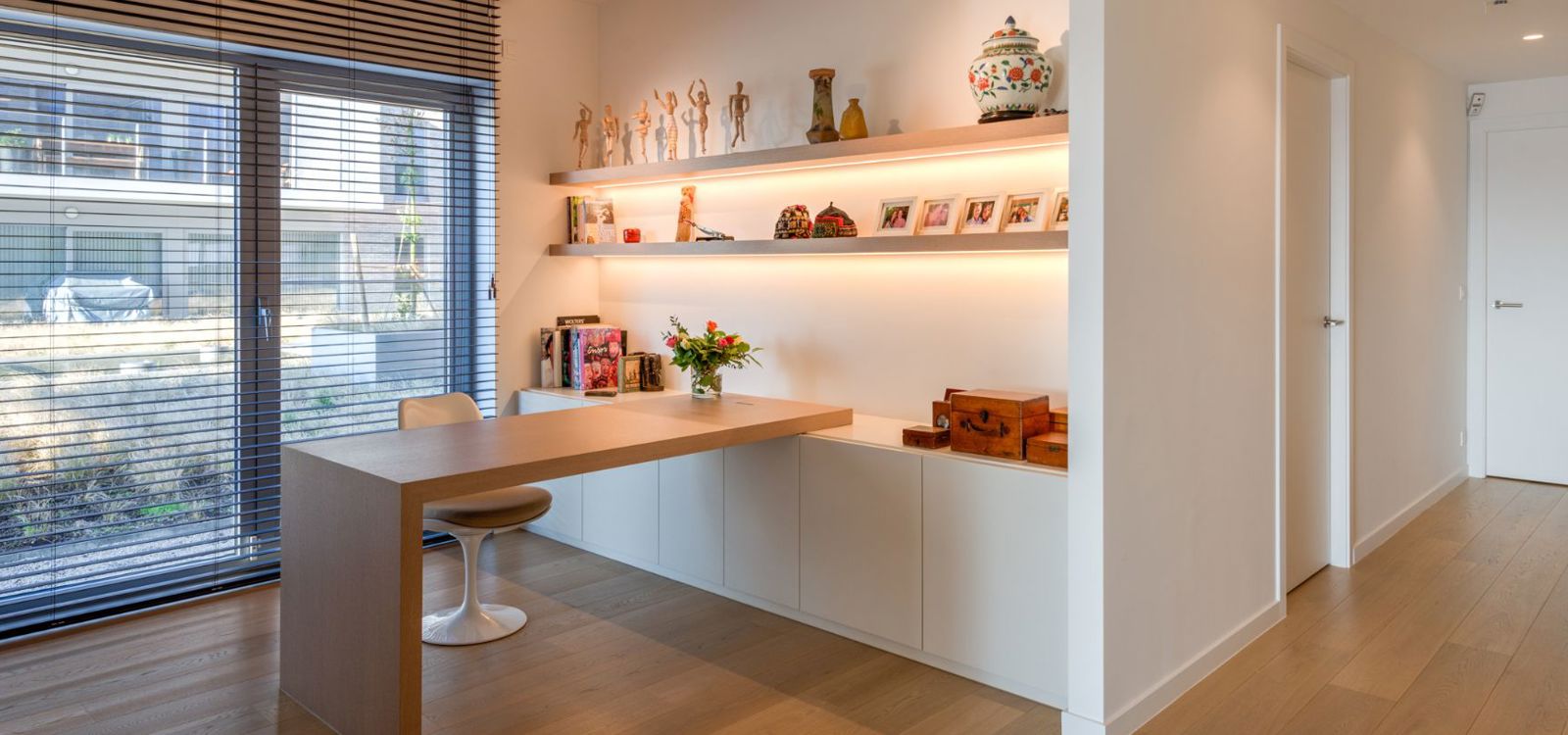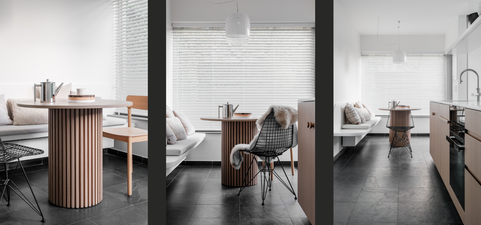 Dit appartement op de zeedijk werd volledig op maat ingericht. De optimalisatie van de beschikbare ruimte en het maximaliseren van de lichtinval bepaalde hier mee het ontwerp.