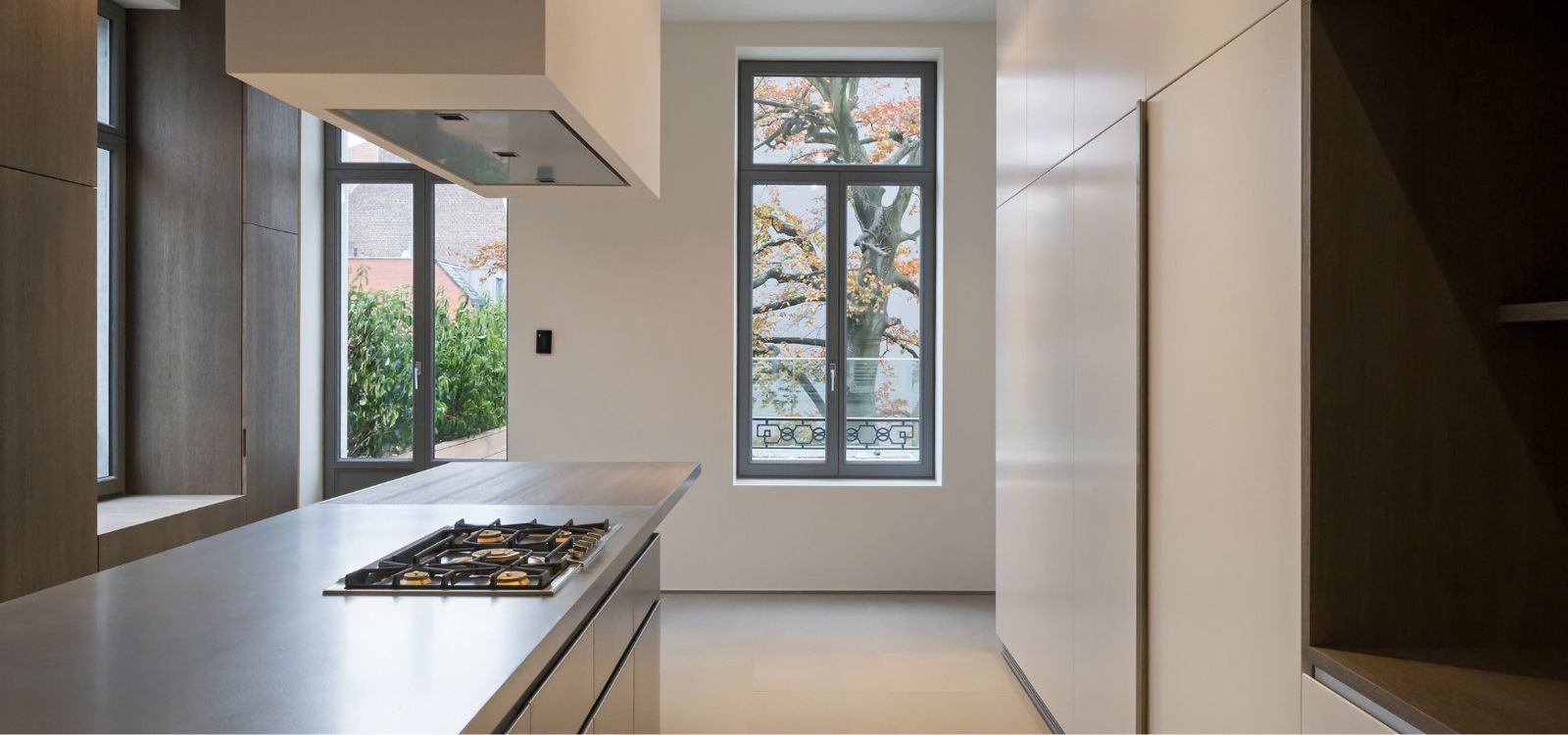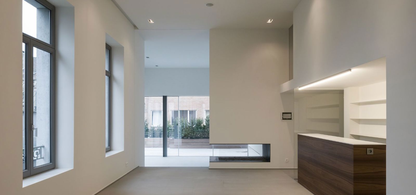 Deze totaalrenovatie van herenhuis te Brussel werd uitgevoerd met respect voor de authentieke elementen van deze woning, in combinatie met een moderne maar warme inrichting.
