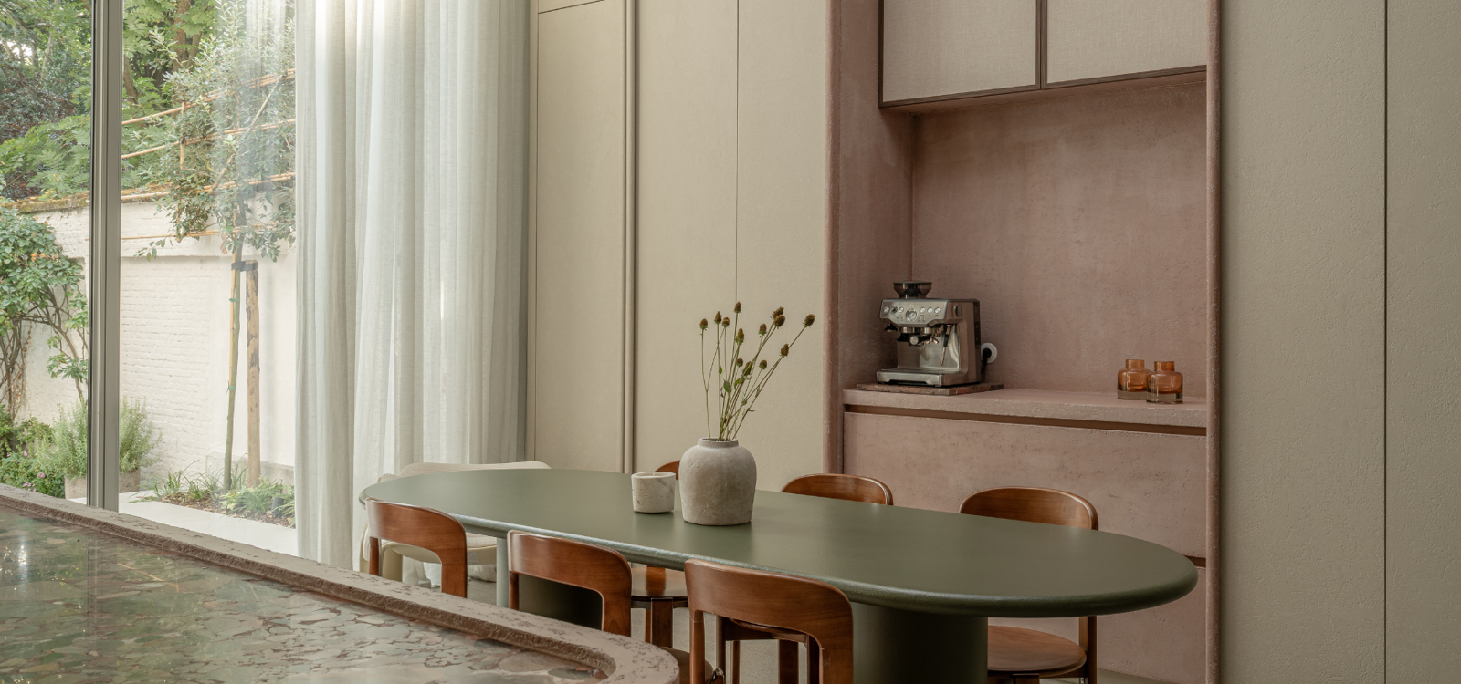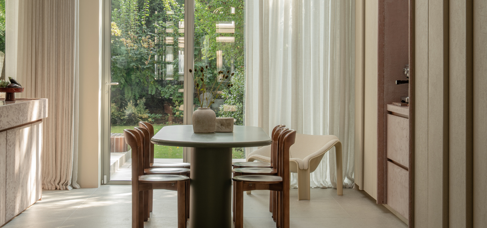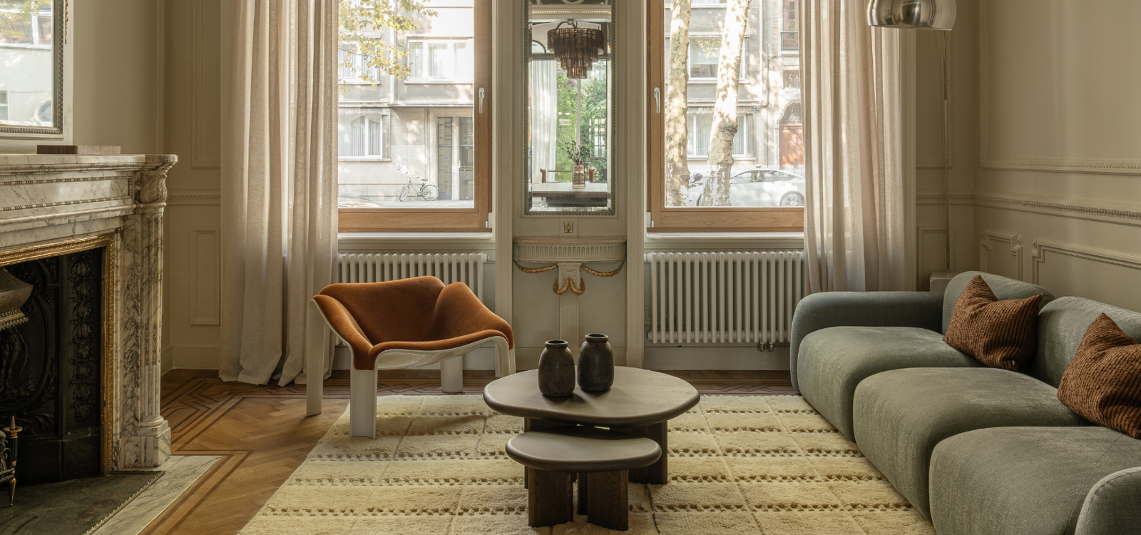 In deze prachtige herenwoning werd de klassieke charme omgevormd tot een hedendaagse, lichte thuis waar authenticiteit en comfort elkaar ontmoeten. De afgeronde vormen, warme materialen en zachte tinten creëren een harmonieus geheel waarin elk detail klopt. Het overvloedige daglicht benadrukt de rijke texturen en laat het maatwerk tot zijn leven komen.